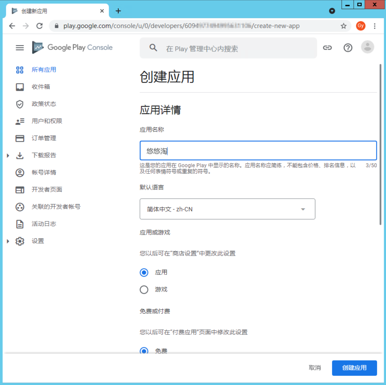4.1. 向 Google 付费 25美元注册申请开发者账号,登录 GooglePlay 控制台 创建应用。